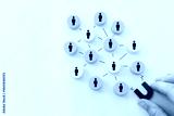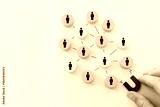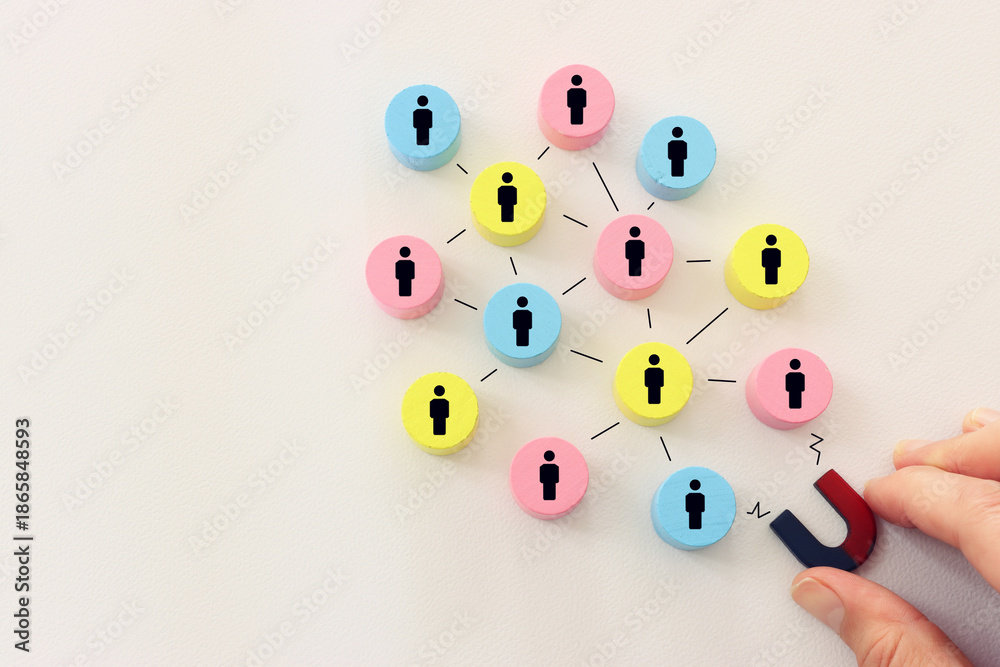 Concept image of a magnet attracting a group of people. metaphor of media influence and human resources