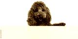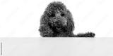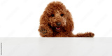 Poodle dog peeking over empty white surface isolated. Concept of banner advertising, message placement, copy space layouts, promotional design, marketing content. Transparent background
