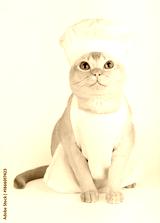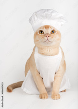 Funny burmese cat in chef hat and apron