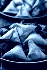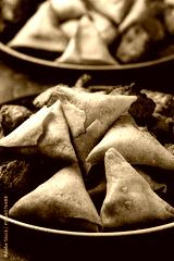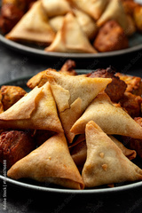 Indian Style Snack Selection with onion bhajis, pakoras and samosas