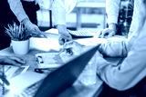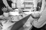 Executive business team people group working with documents at table, analyzing corporate strategy, reviewing plan, managing financial project overview at office meeting, digital tablet, laptop.