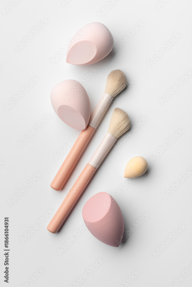 Minimal Makeup Brushes and Sponges in Clean Beauty Flat Lay