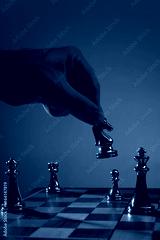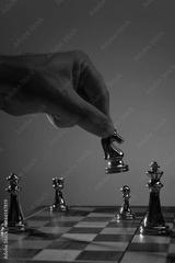 Hand holding chess knight above game board in neon. Concept of unconventional move, surprise tactic, probability play, gambling behavior, creative business thinking, strategic disruption.