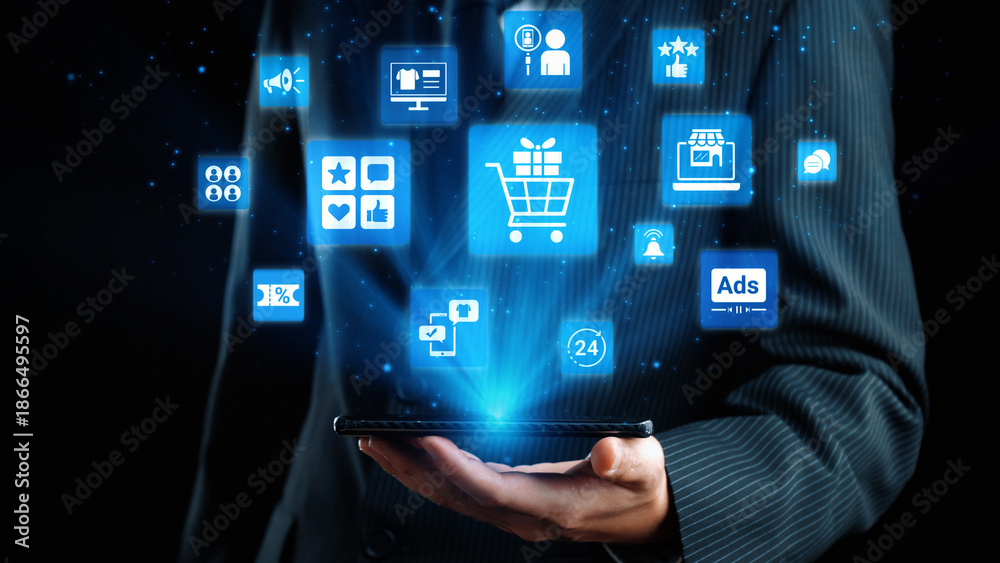 Concept of social media shopping transforms e-commerce. This platform offers seamless shopping experiences, enhancing social media interaction for online business growth. Gist