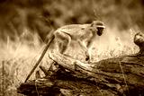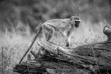 Vervet monkey walking on a log in Greater Kruger National park, South Africa ; Specie Chlorocebus pygerythrus family of Cercopithecidae