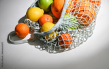 Light Blue Net Bag with Various Citrus Fruit and Green Apples