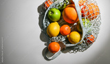 Light Blue Net Bag with Various Citrus Fruit and Green Apples