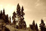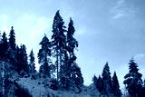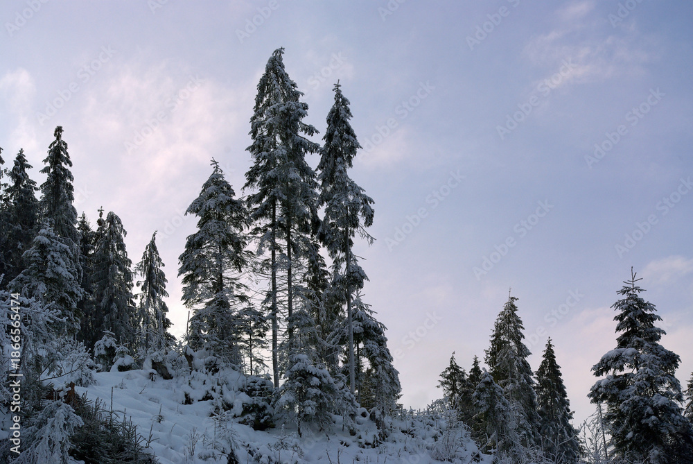 Snow Covered Pine Forest on Mountain Slope in Winter