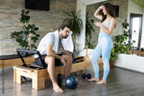 Capturing the moment of exhaustion but happiness after a vigorous workout session, reflecting pilates dedication.