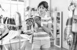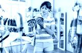 Girl chooses shorts in a clothing boutique