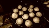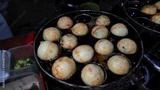 Takoyaki, an iconic Japanese snack in the form of small balls that are crispy on the outside and soft on the inside, at night markets