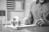 mortgage, calculator, loan, interest, rate, payment, A professional signing real estate documents beside a small house model, illustrating mortgage loan planning and property investment.