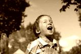 Portrait of a Cheerful Laughing Three-Year-Old Toddler Boy Outdoors