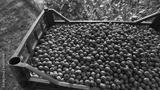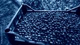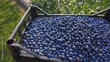 Freshly picked organic blueberries in fruit crates prepared for selling on a market.