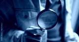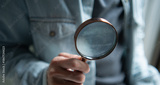 Hand holding a magnifying glass for search, investigation, and analysis concept. Discovery and inspection tool for business or research seo marketing trends