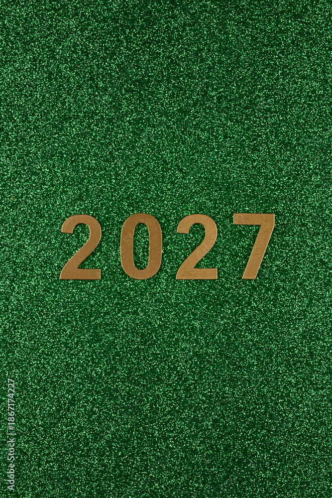 Números de año nuevo de 2027 sobre fondo verde purpurina o fantasía
