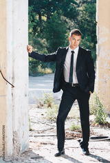 Awesome stylish men in elegant suite posing. Elegance and Luxury Man concept.