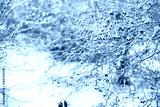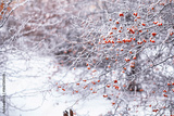 Winter atmospheric landscape with frost-covered dry plants during snowfall. Winter Christmas background