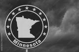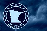 Minnesota map with stars on a US red, white and blue road sign