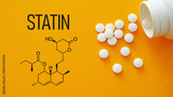 Statins Medication Concept for Cholesterol Control are shown using a text and chemical formula