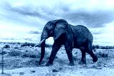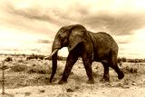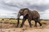 Large male african elephant walking in the savannah on cloudy day