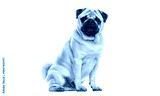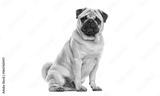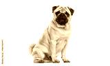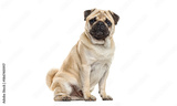 Fawn pug dog sitting on white background looking at viewer
