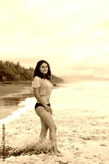 Close-up portrait of young Hispanic woman hugging tree trunk in nature