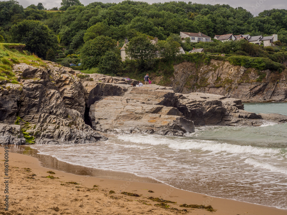 Beautiful golden sands at Aberporth Beach, Cardigan Bay, Pembrokeshire, Wales, uk