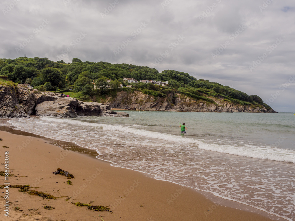 Beautiful golden sands at Aberporth Beach, Cardigan Bay, Pembrokeshire, Wales, uk