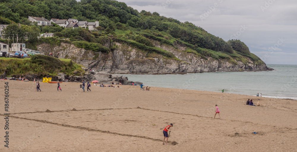Beautiful golden sands at Aberporth Beach, Cardigan Bay, Pembrokeshire, Wales, uk