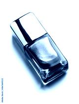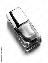 Nail polish bottle, purple, pink glitter nailpolish, manicure concept. Enamel, varnish isolated on white background. Beauty salon, nail care product. Nail art. Top view. Flat lay, vertical photo