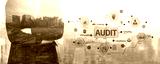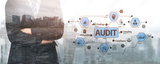 A confident businessman stands in front of a bustling cityscape, representing the critical elements of the audit process, highlighting compliance, findings, and sampling in a modern context. Tessel