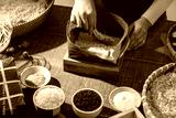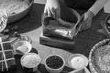 Hands arranging dong leaves and rice layers to wrap Chung cake, symbolizing Vietnamese Tet traditions and ancestral cooking rituals during Lunar New Year celebrations