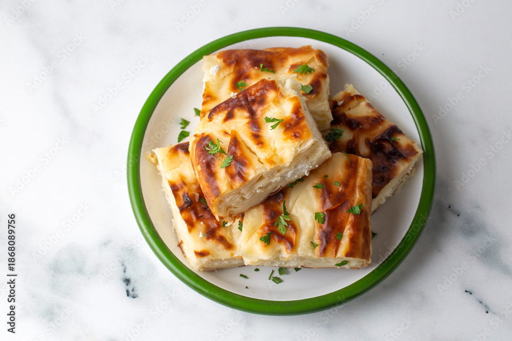 Delicious Turkish food; Tray pastry; (Turkish name; Su boregi)