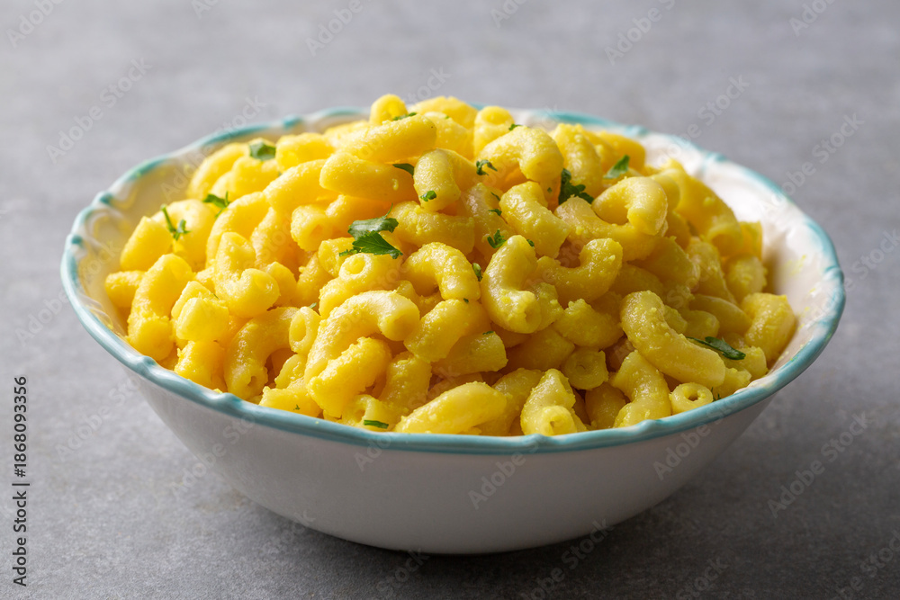 Delicious macaroni and cheese , American mac and cheese, macaroni pasta in cheesy sauce.