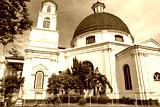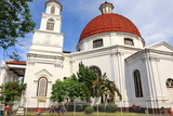 The ancient building of Bleduk Church, an icon of the old city of Semarang, stands as a white Orthodox building featuring ancient European architecture with domes and religious crosses.