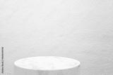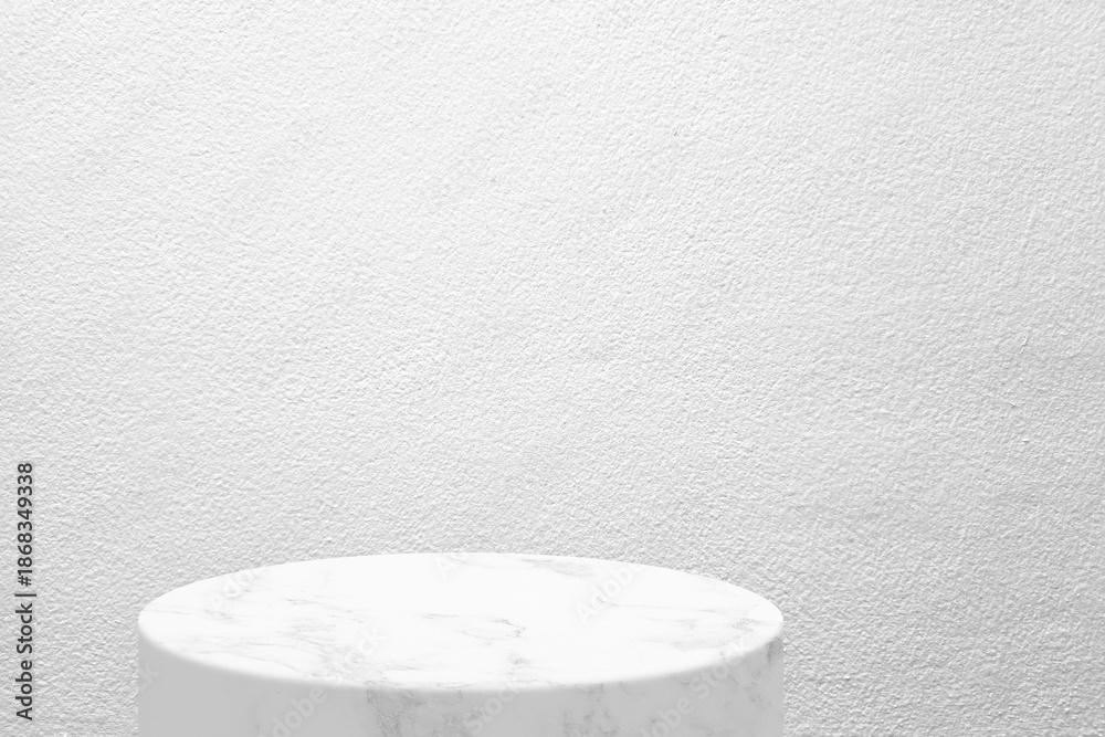 White Marble Product Display Stand on Concrete Wall Background.