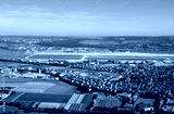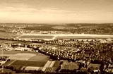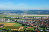 Aerial view of Stuttgart area with Stuttgart Airport (STR) on a sunny day