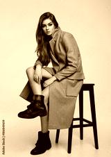 Beautiful young girl wearing long grey jacket