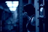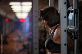 Woman athlete performing exercises in the gym in evening hours for strength training