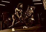 fitness woman in sport wear with perfect sexy fitness body in gym performing