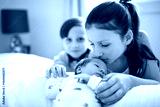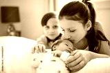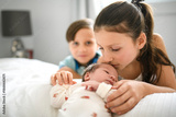 newborn baby with Child holding new infant brother for the first time.
