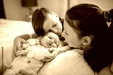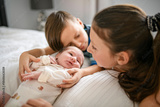 newborn baby with Child holding new infant brother for the first time.