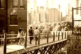 Group Of Friends Walking With Manhattan Skyline In Background