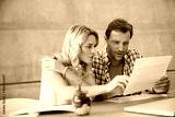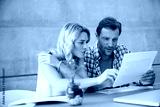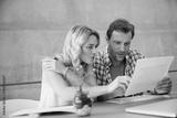 Couple, documents and discussion with finance in home, review and wealth planning with investment. People, paperwork and point with admin, asset management and conversation with bills at apartment