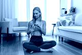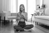 Young Sporty Woman Sitting on Yoga Mat Drinking Water After Home Workout Session Fitness and Hydration Concept in Bright Living Room with Blonde Female in Sportswear Resting and Refreshing