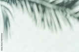 Blurred shadow of tropical palm leaves on gray wall background. Summer concept.
