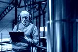 Senior factory worker performing safety inspection wearing ppe