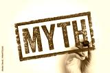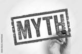 MYTH stamp held by a hand, symbolizing false beliefs or misconceptions. Useful for educational content, fact-checking visuals, awareness campaigns, and critical thinking topics