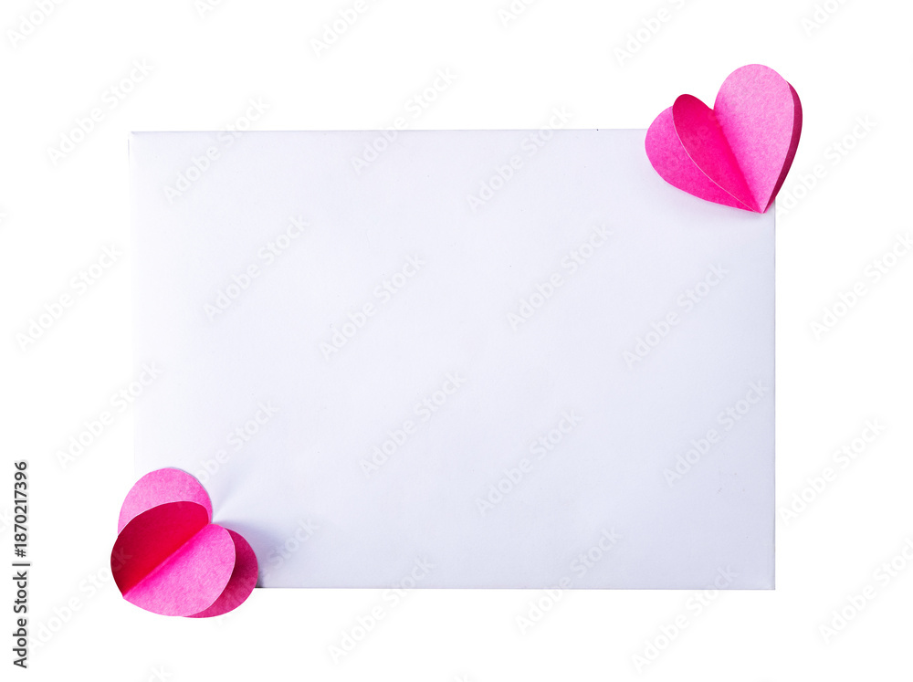 pink heart with blank card isolated on white